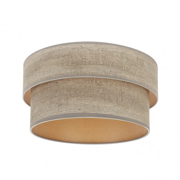 Pantalla de la serie SMILE de color MADERA GRIS. Realizado en material textil. Diseñada para cogida a un portalámparas E27 en la parte inferior de la pantalla para PIE DE SALÓN. Formada por dos cuerpos dispuestos por tamaños descendentes de mayor a menor, resultando una composición de diseño muy original y moderno, recordando a la madera, ideal para decorar en rincones de salones, dormitorios, comedores y zonas de trabajo. Tiene unas dimensiones de 40x35x21 centímetros. Podemos encontrar en esta serie varios tamaños y diseños, todos realizados en tejidos que nos recuerdan a madera clara, madera oscura, madera gris, óxido y madera negra.