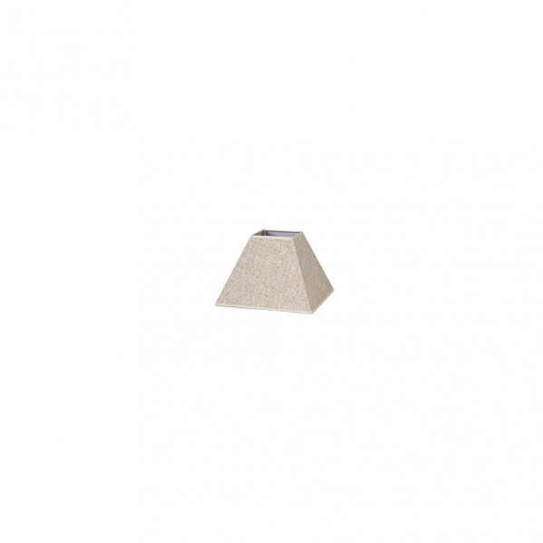 Pantalla piramidal con base cuadrada de la serie TENORIO de color BEIS. Realizado en material textil lino. Diseñada para agarre con PINZA. Sus dimensiones son de 12Dx7dx10h centímetros. También disponible en color gris y en varios tamaños.