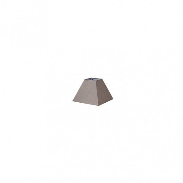 Pantalla piramidal con base cuadrada de la serie TENORIO de color GRIS. Realizado en material textil lino. Diseñada para agarre con PINZA. Sus dimensiones son de 12Dx7dx10h centímetros. También disponible en color beis y en varios tamaños.