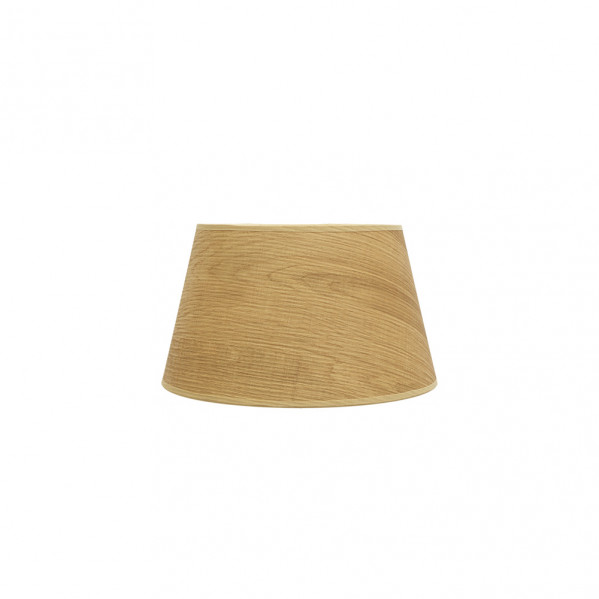 Pantalla cónica abierta serie SALMA de color MADERA CLARA. Realizado en material textil. Diseñada para un portalámparas E27. Sus dimensiones son de 25x20x15 centímetros y un peso neto de 165 gramos. En esta serie de pantallas están disponible varios tamaños y en color madera negra, madera gris, madera oscura, natural, cemento gris, pergamino y óxido.