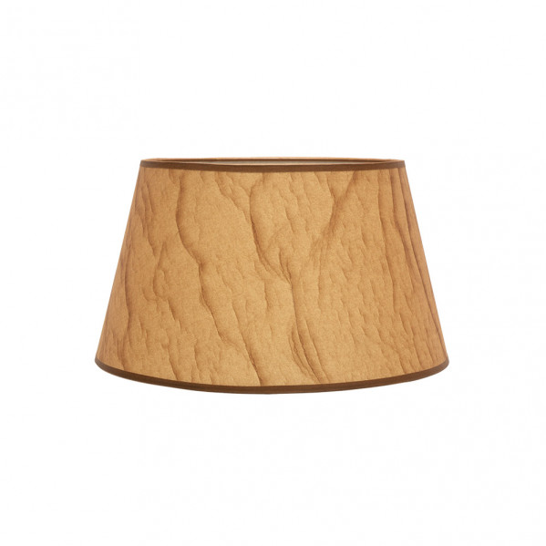 Pantalla cónica abierta serie SALMA de color y textura PERGAMINO. Realizado en material textil. Diseñada para un portalámparas E27. Sus dimensiones son de 35x25x20 centímetros y un peso neto de 250 gramos. En esta serie de pantallas están disponible varios tamaños y en color madera negra, madera gris, madera oscura, madera clara, natural, cemento gris y óxido.