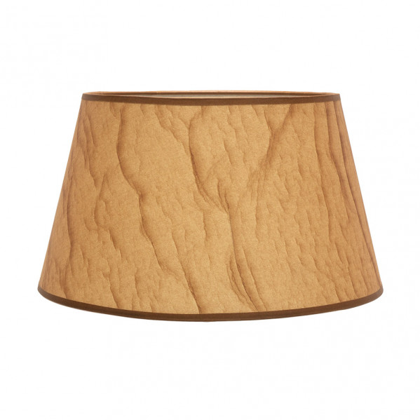 Pantalla cónica abierta serie SALMA de color y textura PERGAMINO. Realizado en material textil. Diseñada para un portalámparas E27. Sus dimensiones son de 45x35x30 centímetros y un peso neto de 500 gramos. En esta serie de pantallas están disponible varios tamaños y en color madera negra, madera gris, madera oscura, madera clara, natural, cemento gris y óxido.
