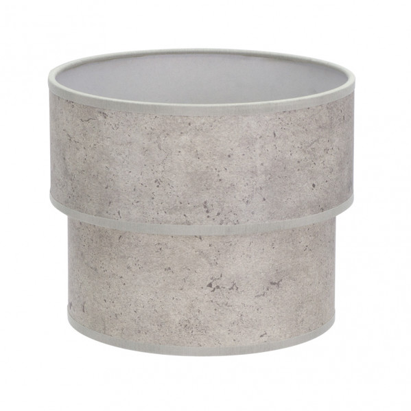 Pantalla de la serie SMILE de color CEMENTO GRIS. Realizado en material textil. Diseñada para cogida a un portalámparas E14. Formada por dos cuerpos dispuestos por tamaños descendentes de mayor a menor, resultando una composición de diseño muy original y moderno, recordando a la madera, ideal para sobremesas y decorar en salones, dormitorios, comedores y zonas de trabajo. Tiene unas dimensiones de 18x16x16 centímetros. Podemos encontrar en esta serie varios tamaños y diseños, todos realizados en tejidos que nos recuerdan a madera clara, madera oscura, madera gris, óxido y madera negra.
