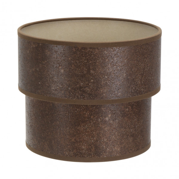 Pantalla de la serie SMILE de color OXIDO. Realizado en material textil. Diseñada para cogida a un portalámparas E14. Formada por dos cuerpos dispuestos por tamaños descendentes de mayor a menor, resultando una composición de diseño muy original y moderno, recordando a la madera, ideal para sobremesas y decorar en salones, dormitorios, comedores y zonas de trabajo. Tiene unas dimensiones de 18x16x16 centímetros. Podemos encontrar en esta serie varios tamaños y diseños, todos realizados en tejidos que nos recuerdan a madera clara, madera oscura, madera gris, óxido y madera negra.