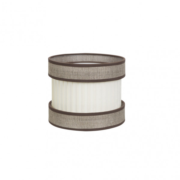 Pantalla de diseño de la serie HOME combinando tres pantallas de color MARRON/BEIS. Realizada en textil, de estilo moderno, se presenta una pantalla central plisada y dos en sus extremos de color marrón, ribeteadas en marrón oscuro, resultando una pantalla muy original y decorativa para sobremesas. Ideal para cualquier estancia de su hogar o centro de trabajo. Diseñadas para cogida con portalámparas E14. Tiene unas dimensiones de 18x18x18 centímetros. Disponibles en esta serie, pantallas de 18, 30, 40,50 y 60 centímetros de diámetro, tanto en color gris-beis como en color marrón-beis.