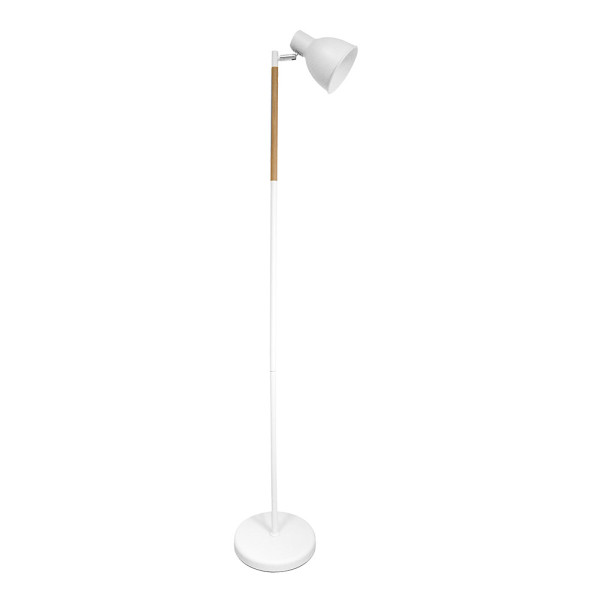 Pie de Salón de la serie AFOCAR de color BLANCO/HAYA realizado en madera y metal. Presenta un portalámpara E27 con cabezal, blanco por dentro, articulado y orientable 360º que le permite direccionar la luz donde desee. Bombilla no incluida. De estilo moderno es ideal tanto para estudios y espacios de trabajo como para punto de luz auxiliar en salones y dormitorios, muy acorde con varios estilos de decoración como el Rústico o Industrial, o incluso con el nuevo estilo Boho Chic mezclando texturas y colores. Sus dimensiones son de 140X25X25 centímetros. Disponible en color negro/haya y blanco/haya.