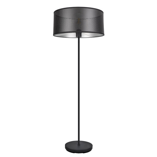 Pie de Salón de la serie ANASTASIA de color NEGRO con pantalla confeccionada con tejido perforado de color NEGRO/PLATA. Posee un portalámparas E27. Bombilla no incluida. Destaca su pantalla cilíndrica perforada con plata en su interior. Estilo muy original y moderno, ideal para decorar e iluminar en entraditas, salones, despachos y salas de estar, aportando sofisticación a la estancia que ilumina. Apta para decoraciones Industriales, muy acorde también con estilos modernos que tienen la iluminación como elemento característico. Tiene unas dimensiones de 159x40x40 centímetros. En esta serie podemos encontrar los colgantes de 50, 40 y 30 centímetros de diámetro, dos tamaños diferentes de sobremesas, aplique, plafones de 48, 72 y 96 watios y el pie de salón, todos combinando el metal de sus armazones en negro con el textil perforado de sus pantallas negro/plata.