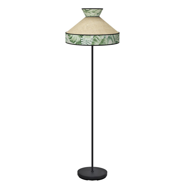Pie de Salón de la serie CONSTANTINOPLA de color BEIS/VERDE ribeteada con cinta y cuerpo en NEGRO. Realizado en material textil y metal. Posee un portalámparas E27, bombilla no incluida. Su pantalla tiene unas dimensiones de 156x40x40 centímetros. Pantalla moderna de diseño muy original, tanto por su forma, como por la combinación de colores y texturas de sus tejidos, mezclando tejido estampado con rafia natural, resultando una composición única para decorar cualquier rincón o estancia, poniendo siempre un toque de color y sofisticación. Disponible en esta serie los colgantes de 30, 40 y 50 centímetros de diámetro, regleta y plafón con tres colgantes, dos tamaños de sobremesas y el pie de salón, todos con la combinación en beis/verde o beis/roja, para elegir la que mejor le vaya a su decoración.