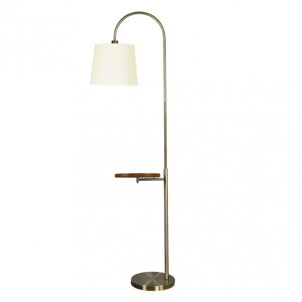 Pie de salón de la serie MARFIL en color CUERO con pantalla BEIS. Realizado en metal, madera y textil. Destaca su diseño moderno con mesita auxiliar resistente con acabado en roble, que lo hace versátil y útil a la vez que elemento decorativo aportando elegancia a la estancia, muy aconsejable para dormitorios sin espacio para mesitas de noche, para salones y salas de espera con poco espacio. Posee un portalámparas E27. Bombilla no incluida. Sus dimensiones son de 180x30x52 centímetros. Modelo también disponible en color níquel con pantalla blanca.