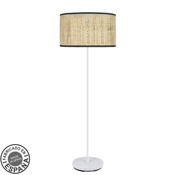 Pie de Salón de la serie MODA de color BLANCO y pantalla de diseño CAÑIZO OSCURO. De estilo moderno, pero con líneas sencillas, idóneo para ambientes decorados con los nuevos estilos desde el minimalista, Boho Chic o incluso rústico, también muy acorde para zonas abocadas al descanso, a juego con el resto de su decoración, mezclando colores y texturas. Aportan calidez a comedores, dormitorios, salones y centros de trabajo. Posee un portalámparas E27. Bombilla no incluida. Sus dimensiones son de 163x40x40 centímetros. Podemos adquirir en esta serie una gran cantidad de productos a juego, con una gran variedad de diseños y colores de pantallas en sus ventiladores, sobremesas y pies de salón.