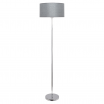 Pie de salón serie Axel de color plata. Este pie de salón forma parte de una familia muy completa de colgantes de varias medidas, sobremesa y aplique. Está realizado en metal de color cromo y pantalla textil de color plata. Sus dimensiones son 165x40x40 cm y su peso neto 415 g. El portalámparas es E27.