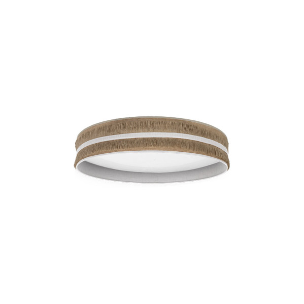 Plafón de la serie NATALIA con pantalla confeccionada en tela de SACO y lino rayado BLANCOCompuesto por pantalla y plafón de la serie CALIGULA. Posee TECNOLOGÍA LED INTEGRADO con 72 watios de potencia, 5616 lúmenes y TRES TEMPERATURAS SELECCIONABLES DESDE EL INTERRUPTOR DE LA LUZ (3000ºK-4000ºK-6500ºK), luz cálida, blanco neutro y blanco frío, con lo que aporta un gran ahorro de energía.  Destaca su original pantalla cilíndrica con una doble pasamanería de flecos y cinta de colores al igual que su interior, resultando una serie moderna y muy decorativa. Ideal para dormitorios, entraditas, salones y salas de estar, compatibles tanto con decoraciones rústicas como clásicas o vintage. Tiene unas dimensiones de 13x50x50 centímetros. En esta serie podemos encontrar colgantes, sobremesas, apliques, plafones y pies de salón, todos combinando el tejido de saco con lino blanco, naranja, negro, beis ó turquesa, y con monturas en negro, blanco, cuero ó níquel.