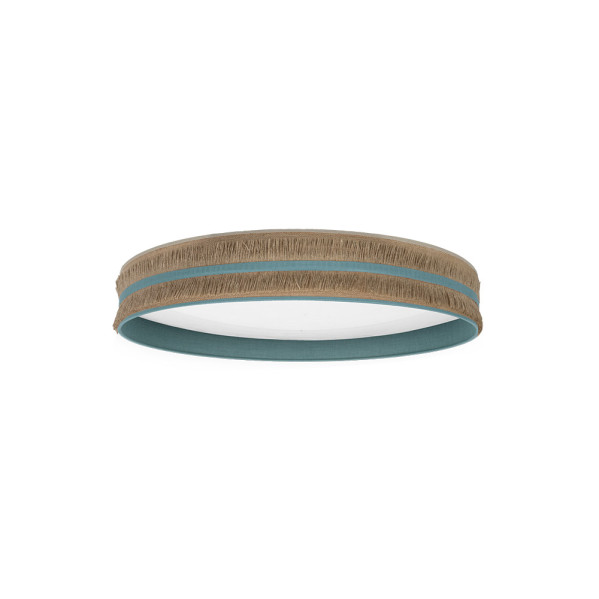 Plafón de la serie NATALIA con pantalla confeccionada en tela de SACO y lino rayado TURQUESA. Compuesto por pantalla y plafón de la serie CALIGULA. Posee TECNOLOGÍA LED INTEGRADO con 96 watios de potencia, 7488 lúmenes y TRES TEMPERATURAS DE LUZ SELECCIONABLES DESDE EL INTERRUPTOR DE LA LUZ (3000ºK-4000ºK-6500ºK), luz cálida, blanco neutro y blanco frío, con lo que aporta un gran ahorro de energía. Destaca su original pantalla cilíndrica con una doble pasamanería de flecos y cinta de colores al igual que su interior, resultando una serie moderna y muy decorativa. Ideal para dormitorios, entraditas, salones y salas de estar, compatibles tanto con decoraciones rústicas como clásicas o vintage. Tiene unas dimensiones de 13x60x60 centímetros. En esta serie podemos encontrar colgantes, sobremesas, apliques, plafones y pies de salón, todos combinando el tejido de saco con lino blanco, naranja, negro, beis ó turquesa, y con monturas en negro, blanco, cuero ó níquel.