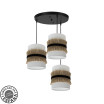 Plafón con tres luces de la serie ANGOLA de color NEGRO con pantallas de diseño en color BLANCO/NEGRO/YUTE. Realizado en metal y textil, con cinta de terciopelo y Yute. De estilo moderno, presenta sus pantallas colgantes con un contraste de colores y texturas muy original y decorativo para iluminar en dormitorios, comedores, salones y zonas de trabajo, creando un ambiente diferente, ideal para las nuevas decoraciones en las que se mezclan materiales con ideas retro que le dan un toque kitsch al ambiente que iluminan. Posee tres portalámparas E27. Bombillas no incluidas. Su pantallas quedan suspendidas a distintas alturas, teniendo unas dimensiones de 43<,95x42x42 centímetros. En esta serie, encontramos a juego los colgantes de 30, 40 y 50 centímetros de diámetro, regleta de 3 luces, plafón de 3 luces, el pie de salón, dos tamaños de sobremesas y el aplique.