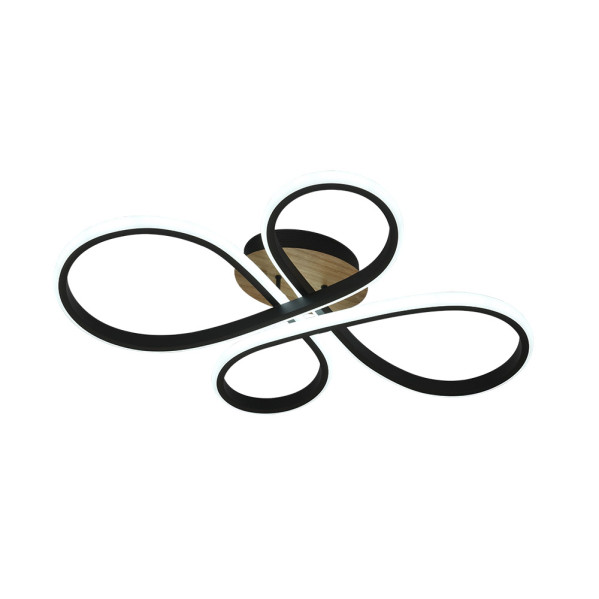 Plafón de la serie BANDEIRA en color NEGRO/MADERA. Realizado en metal, aluminio y acrílico. De diseño futurista, muy moderno a la par que elegante, se caracteriza por sus formas curvas e infinitas sobre una pletina en color madera, resultando un original y bonito juego lumínico. Ideal tanto para salas, salones, estancias diáfanas y dormitorios como para espacios de trabajo, dando sensación de profundidad, iluminan con una gran fuente de luz a la vez que decoran la estancia, el diseño de luces que presentan lo hacen el centro de la habitación que iluminan. Posee tecnología LED INTEGRADA, proporcionando un gran ahorro, con una potencia de 88 vatios y 9680 lúmenes, con TRES TEMPERATURAS SELECCIONABLES DE LUZ, 3000-4000-6500ºK (luz cálida, natural y blanco frío) pudiendo elegir en cada momento la que mejor se adapte a la actividad a realizar. Viene con MANDO A DISTANCIA incluido, REGULABLE EN INTENSIDAD y MEMORIA de color. Tiene unas dimensiones de 12x60x43 centímetros. Disponible en esta serie de varios diseños de 88w, 104w y 130w para elegir a juego la combinación de ellos que mejor se adapte a su decoración, todos en color blanco/haya y en negro/madera.