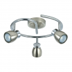 Plafón con tres focos de la serie CHACHO de color NIQUEL/CROMO. Realizado en metal con tres portalámparas GU10 . Bombillas no incluidas. De diseño moderno y original dispuestos en círculo con focos articulables verticalmente y con un giro horizontal de casi 360º permitiendo así dirigir los puntos de luz hacia cualquier zona de la estancia. Sus dimensiones son 14X30X30 centímetros. Modelo también disponible en color blanco/cromo y cuero. Se puede completar la colección con la versión de regleta de cuatro luces, regleta de tres luces, regleta de dos luces y foco de una luz.