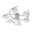Plafón de seis luces de la serie CONIL, realizada en metal color CROMO y tulipas de cristal blanco. Con un cuerpo de diseño moderno resulta una composición muy original y decorativa. Ideal para salones, dormitorios, entradas y salas de estar. Posee seis porta lámparas G9. Bombillas no incluidas. Tiene una dimensión de 16x63x63 centímetros. En esta serie podemos encontrar plafón de seis, cuatro y tres luces, el aplique y el sobremesa a juego. También combinable con la serie TONGA.