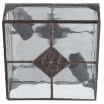 Plafón Grande de la serie ESTEPA fabricado en metal color cobre envejecido y cristal rugoso. Tiene unas dimensiones de 11x25x25 centímetros y un peso neto de 1770 gramos. Posee dos porta lámparas E27, bombillas no incluidas. En esta serie podemos encontrar el colgante, el aplique y dos tamaños de plafones, todos en color plata, oro y cobre.
