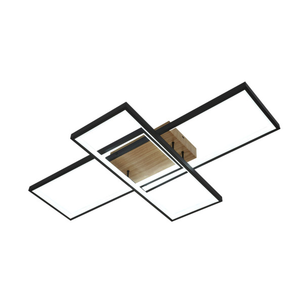 Plafón de la serie MADALETA en color NEGRO/MADERA. Realizado en metal, aluminio y acrílico. De diseño futurista muy moderno a la par que elegante, se aprecian tres rectángulos de luz superpuestos sobre una pletina en madera, resultando un bonito juego lumínico. Ideal tanto para salas, salones, estancias diáfanas y dormitorios como para cocinas abiertas y espacios de trabajo, dando sensación de profundidad, iluminan a la vez que decoran la estancia, el diseño de luces que presentan lo hacen el centro de la habitación que iluminan. Posee tecnología LED INTEGRADA, proporcionando un gran ahorro, con una potencia de 134 vatios y 14740 lúmenes, con TRES TEMPERATURAS SELECCIONABLES DE LUZ, 3000-4000-6500ºK (luz cálida, natural y blanco frío) pudiendo elegir en cada momento la que mejor se adapte a la actividad a realizar. Viene con MANDO A DISTANCIA incluido, REGULABLE EN INTENSIDAD y MEMORIA de color. Tiene unas dimensiones de 9,5x79x49,5 centímetros. Disponible en esta serie de 104 vatios y de 134 vatios con sus correspondientes tamaños, todos en blanco/haya y en negro/madera, para elegir las combinaciones que mejor se adapten a su decoración.