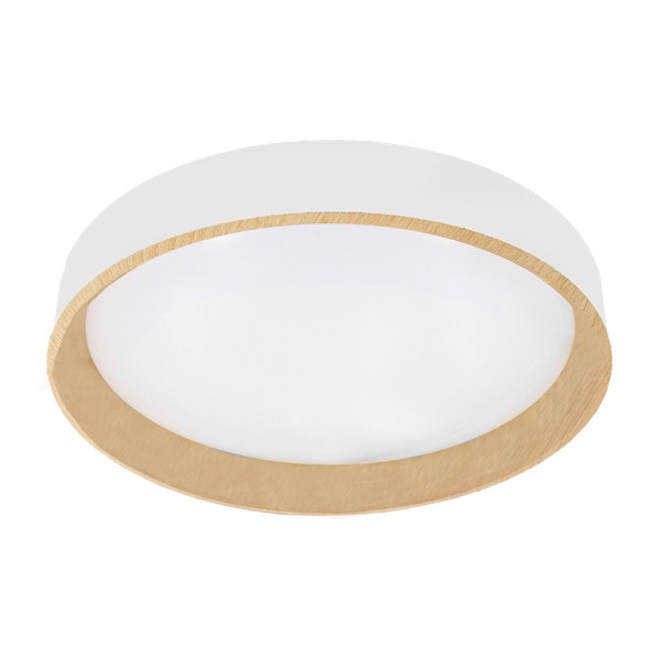 Plafón redondo de la serie MORGAN en color BLANCO/HAYA. Realizado en metal y policarbonato, de diseño muy original y con acabados a juego con su decoración. Este plafón posee una TECNOLOGÍA LED INTEGRADO con 60 watios de potencia, 5400 lúmenes y TRES TEMPERATURAS DE LUZ (3000ºK-4200ºK-6500ºK), luz cálida, blanco neutro y blanco frío. Muy decorativo, con MANDO A DISTANCIA y REGULABLE EN INTENSIDAD. Tiene unas dimensiones de 7,5x50x50 centímetros. Disponibles en esta misma serie en color plata/negro, blanco/plata y blanco/haya.