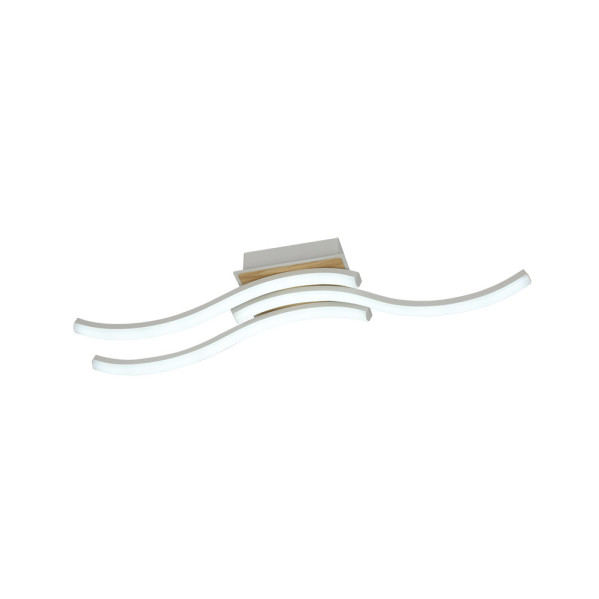 Plafón de la serie MURRAY en color BLANCO/HAYA. Realizado en metal, aluminio y acrílico. De diseño futurista muy moderno a la par que elegante, se aprecian tres ondas de luz sobre una pletina en madera, resultando un bonito juego lumínico. Ideal tanto para salas, salones y dormitorios como para cocinas y espacios de trabajo, dando sensación de profundidad, iluminan a la vez que decoran la estancia, el diseño de luces que presentan lo hacen el centro de la habitación que iluminan. Posee tecnología LED INTEGRADA, proporcionando un gran ahorro, con una potencia de 48 vatios y 5280 lúmenes, con TRES TEMPERATURAS SELECCIONABLES DE LUZ, 3000-4000-6500ºK (luz cálida, natural y blanco frío) pudiendo elegir en cada momento la que mejor se adapte a la actividad a realizar. Viene con MANDO A DISTANCIA incluido, REGULABLE EN INTENSIDAD y MEMORIA de color. Tiene unas dimensiones de 9,5x62x11 centímetros. Disponible en esta serie con tres diseños diferentes y todos en blanco/haya o en negro/madera, para elegir las combinaciones que mejor se adapten a su decoración.