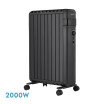 Radiador de Aceite eléctrico de la serie POLONIA en color NEGRO. Realizado en metal y policarbonato. Equipado con 2000 watios de potencia repartidos en sus 9 elementos calefactores, que permiten calentar eficazmente y con bajo consumo cualquier estancia. Con tres potencias seleccionables, 800w/1200w/2000w para elegir, dependiendo del espacio y la rapidez con la que desea se caliente la estancia, viene con control de Termostato Ajustable, sistema de protección sobrecalentamiento y SISTEMA ANTIVUELCO. Se presenta con un diseño muy elegante de aletas cerradas y fácil de transportar gracias al asa y las ruedas que contiene en su estructura facilitando así el desplazamiento. Tiene unas dimensiones de 63,5x45x24,5 centímetros. Disponibles en esta serie de 1500w, 2000w y 2500w de máxima potencia con sus respectivos tamaños.