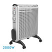 Radiador de Mica eléctrico de la serie CONDOR, de sencillo diseño en color BLANCO/GRIS. Realizado en metal, policarbonato y mica. Equipado con 2000 watios de potencia, elemento calefactor de mica que permiten calentar de forma segura, silenciosa, sin olores, rápida y eficazmente con bajo consumo, emite calor por arriba y por ambos lados de su estructura consiguiendo de manera casi inmediata la temperatura óptima para cualquier estancia. Sin fluidos y sin consumo de oxígeno. Con IP24 y funcionamiento a bajas temperaturas gracias a su FUNCION ANTIHIELO. Con dos potencias seleccionables, 1000w/2000w para elegir, dependiendo del espacio y la rapidez con la que desea se caliente la estancia. De fácil manejo, con control de Termostato Ajustable, sistema de protección sobrecalentamiento, sistema antivuelco y rejilla de protección para una mayor seguridad. Se presenta con un diseño fácil de transportar gracias a su asa incorporada en su estructura y sus ruedas para facilitar el movimiento. Viene también con un útil recogecables para prestar una mayor seguridad cuando no está en uso. Tiene unas dimensiones de 52x46x25 centímetros.