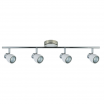 Regleta con cuatro focos de la serie CHACHO de color BLANCO/CROMO. Realizada en metal con cuatro portalámparas GU10 . Bombillas no incluidas. De diseño moderno y original con focos articulables verticalmente y con un giro horizontal de casi 360º permitiendo así dirigir los puntos de luz hacia cualquier zona de la estancia. Sus dimensiones son 14X69,5X10 centímetros. Modelo también disponible en color níquel/cromo y cuero. Se puede completar la colección con la versión de regleta de tres luces, regleta de dos luces, plafón de tres luces y foco de una luz.