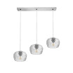 Regleta de tres luces de la serie ESTELA de color CROMO. Realizada en metal y cristal. Posee tres porta lámparas E27. Bombillas no incluidas. Destaca por el diseño moderno y original de sus tulipas de cristal transparente tallado, pudiendo dejarlas suspendidas a la misma o a diferentes alturas, resultando una bonita composición muy decorativa para dormitorios, comedores, salones y salas de estar e incluso para zonas de trabajo decoradas con estilo moderno, encajando también muy bien en ambientes decorados con los nuevos estilos Industrial, Vintage y Shabby Chic, mezclando diferentes texturas y estilos. Sus dimensiones, regulables en altura, son de 20<,95x65x13 centímetros. En esta serie podemos encontrar varias piezas como lámparas, colgantes, plafones y regletas, en cuero, cromo, marrón ó blanco, de una, dos, tres y cuatro luces, pudiendo combinar elementos y a diferentes alturas, para que elija entre una gran variedad de combinaciones, la que más se adapte a sus gustos y necesidades.