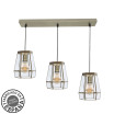 Regleta de tres luces de la serie GUIA realizada en metal de color CUERO y cristal. Piezas únicas y artesanales, producto nacional HECHAS A MANO con un diseño original y elegante, destacan los dibujos geométricos de sus tulipas recordándonos a las lámparas de cristal emplomado, pudiéndose disponer a la misma o a distintas alturas, mezclando materiales y texturas, resultando una composición muy decorativa. Posee tres portalámparas en E27 . Bombillas no incluidas. Ideal para salones, comedores y salas de estar decorados con distintos estilos de decoración, desde el Boho Chic y Vintage como el clásico o rústico. Se recomienda completar con bombillas de filamentos para preservar su estética, como la de referencia 141351181 ó 141351081 que es las que apreciamos en la foto. Tiene unas dimensiones, regulables en altura, de 38<,105x64x15 centímetros. Modelo disponible en regleta de tres luces, plafón de tres luce y colgante, todos ellos a elegir con terminación en blanco, negro o cuero, para escoger el que mejor se adapte a su decoración.
