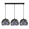 Regleta de tres luces colgantes de la serie LATINA de color NEGRO. Realizada en metal con diseño moderno y original en el que destacan sus tulipas metálicas suspendidas a la misma o a distintas alturas. Posee tres portalámparas en E27. Bombillas no incluidas. La luz pasa a través de los huecos de sus tulipas describiendo un juego de luces muy decorativo ideal para salones y salas de estar e incluso para zonas de trabajo decoradas con diversos estilos de decoración, como pueden ser el Industrial o el Vintage Rústico, tomando parte importante de la decoración. Se recomienda completar con unas bonitas bombillas de globo o Vintage dependiendo de los ambientes en los que se instale para preservar la estética. Sus dimensiones, regulables en altura, son de 35&lt,90x74x20 centímetros. En esta serie encontramos la regleta y el plafón de tres luces colgantes, ambos modelos en negro y en blanco para combinar y escoger el que mejor se adapte a su decoración.