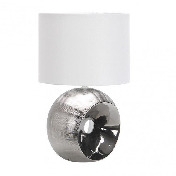 Sobremesa serie EA en color CROMO con pantalla BLANCA. Cuerpo de cerámica de gran tamaño de diseño original y elegante, acompañado de su pantalla, ideal para decorar tanto el dormitorio como la entrada de la casa e incluso un rincón especial en salones y salas de estar, aportando calidez a la estancia. Muy aconsejable en ambientes decorados con el nuevo estilo Neoclásico o Vintage. Posee un portalámparas E27. Bombilla no incluida. Tiene una dimensión de 52x30x30 centímetros. También disponible en color beis.