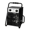 Termoventilador Industrial de la serie SIMEON en color NEGRO. Realizado en metal y policarbonato, materiales de alta calidad como tubos de acero inoxidable y pinturas resistentes a altas temperaturas. Equipado con 3000 watios de potencia y TERMOSTATO REGULABLE DE SEGURIDAD, permitiendo ajustar entre dos potencias de calefacción, 1500 watios y 3000 watios. Distribuye el aire caliente de forma rápida y homogénea gracias a su función ventilador, con sistema de seguridad de protección contra sobrecalentamiento apagándose automáticamente cuando alcanza la temperatura seleccionada y rejilla de protección. Se presenta con un diseño moderno, nos permite calentar garajes, naves, trasteros, zonas de trabajo y también preparado para porches y obras con un IP24 resistente a polvo y salpicaduras. Diseño seguro con soporte estable y fácil de transportar gracias a el asa que viene en su estructura. Tiene unas dimensiones de 44x32x30 centímetros.