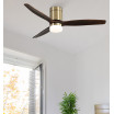 Ventilador AGUILON LED realizado en metal, madera y cristal, en color CUERO con tres aspas de color ROBLE. Motor DC. Tiene seis velocidades ajustables. Tecnología LED incorporada con una potencia de 20W, con 3 TEMPERATURAS SELECIONABLES DE LUZ (3000-4000-6000K) y 2450 lúmenes. Su medida es de 30,5X132X132 centímetros. Control de aire verano o invierno. Mando a distancia INCLUIDO con REGULADOR DE INTENSIDAD, MEMORIA DE COLOR incorporada y TEMPORIZADOR 0,5<,2 H. Modelo también disponible en Níquel/Haya, Marrón/Roble y en Blanco.