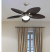 Ventilador DC serie BORASCO realizado en metal, ABS y cristal, en color NÍQUEL con cinco aspas de diseño HOJA DE PALMA TROPICAL de color MARRON. Tiene seis velocidades ajustables. Con INSTALACION DE LUZ OPCIONAL. Tecnología LED incorporada con una potencia de 24W, con 3 TEMPERATURAS DE LUZ( 3000-4000-6000K) y 2950 lúmenes. Su medida es de 38/50,5X132X132 centímetros, viene con DOS MEDIDAS DE TIJA, lo que permite adaptarlo a distintas alturas de techo. Control de aire verano o invierno. Mando a distancia INCLUIDO con MEMORIA DE COLOR incorporada y TEMPORIZADOR 1/2/4/8 H. Modelo también disponible en Marrón.