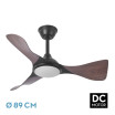 Ventilador DC de la serie CAIMAN realizado en metal, ABS y policarbonato, en color NEGRO con tres aspas de color ROBLE. Tiene seis velocidades ajustables. Motor DC, con INSTALACION DE LUZ OPCIONAL. Tecnología LED incorporada con una potencia de 36 vatios, con 3 TEMPERATURAS DE LUZ( 3000-4500-6500K) y 3600 lúmenes. De diseño moderno y original.Su medida es de 26/41X89X89 centímetros, con dos tijas de 10 y 25 centímetros para instalar a distintas alturas. Control de aire verano e invierno. REGULABLE EN INTENSIDAD, con mando a distancia INCLUIDO, MEMORIA DE COLOR incorporada y TEMPORIZADOR 1/4/8 H. Su voltaje va de 186 a 265 vatios, lo que resiste en un campo muy amplio a subidas y bajadas de tensión sin sufrir daño alguno. Modelo disponible en negro, blanco, blanco/haya y en negro/roble.