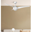 Ventilador DC serie CANEA de color BLANCO con betas simulando madera, con 3 aspas. Realizado en metal, ABS y policarbonato. De diseño moderno y aerodinámico, posee MOTOR DC, 6 velocidades, Tecnología LED integrada con potencia de 24W, 2424 lúmenes y 3 TEMPERATURAS SELECCIONABLES DE LUZ (3000-4500-6000K) luz cálida, blanco natural y blanco frío. Contiene control remoto INCLUIDO, MEMORIA DE COLOR, modo de verano/invierno y TEMPORIZADOR de 1 hasta 8 horas. Tiene una medida de 38/50,9x134x134 centímetros con dos medidas de tija de 12,5 y 25 centímetros, para colocar a diferentes alturas. Modelo también disponible en color marrón.