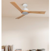 Ventilador DC serie ORINOCO de color BLANCO con 3 aspas en color HAYA. Realizado en metal, madera y policarbonato. Tiene una medida de 32,2/44,7x107x107 centímetros. Motor DC. Tecnología LED integrada con una potencia de 24W, 2424 lúmenes y COLOR DE LUZ SELECCIONABLE EN 3 TEMPERATURAS (3000-4000-6500K) luz cálida, natural y blanco frío. Dispone de control remoto con 6 velocidades diferentes, memoria de color, modo de verano/invierno, temporizador de 2/4/8 horas y Regulador de Intensidad. Incluye dos tijas de 12,5 y 25 centímetros para instalar en techos a distintas alturas. Modelo disponible en color blanco/haya y en negro/roble.
