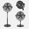 Ventilador 3 en 1 de la serie AIFOS de color NEGRO con cinco aspas. Realizado en metal, PVC y policarbonato. Adaptable a ventilador tanto de suelo, de pie como de pared. Tiene una potencia de 90 vatios, tres velocidades y ROTATORIO manualmente, también ORIENTABLE en el plano vertical, para redirigir el aire en cada momento dónde más le interese. Sus dimensiones, regulable en altura, como ventilador de PIE son de 140x61x61 centímetros, como ventilador de SOBREMESA 90x61x61 centímetros y si prefiere instalarlo como ventilador de pared, APLIQUE, sus medidas son 64x61x61 centímetros. De fácil manejo e instalación y con todo lo necesario para montarlo en la versión que desee.
